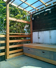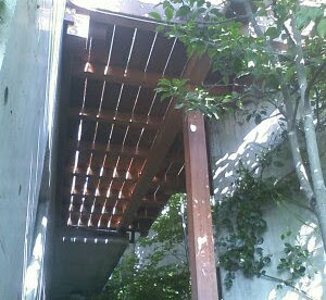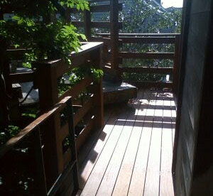 空中デッキ 母屋と離れを繋ぐデッキ